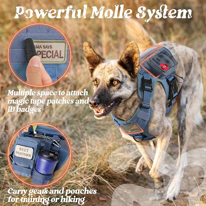 - Practical Design For Versatile Use: Molle system equipped on both sides for pouches, water bottles, and tactical dog gear. Multiple Hook & Loop Panels for morale patches and badges to showcase your dog’s personality. A wide range of use for personal service, law enforcement, hunting, or outdoor recreation