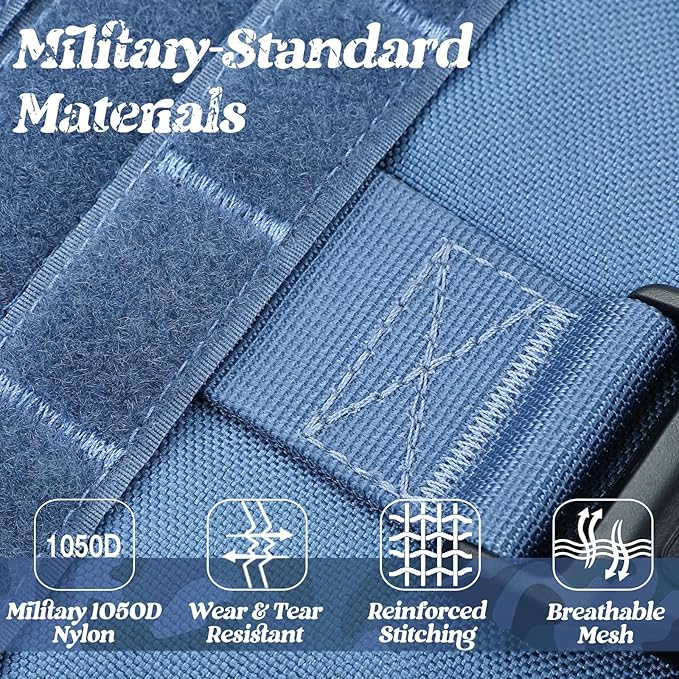 - Military-standard Material: Heavy duty vest made of 1050D Nylon with sturdy stitching for extra durability and wearability, suitable for all field use. Two Metal Shoulder Buckles can bear great pulling force, ensuring your dog is safely harnessed during training, hunting, working, and any other occasion. Well padded in every pressure load point to protect your dog, while the breathable air mesh keeps your dog ventilated and comfortable