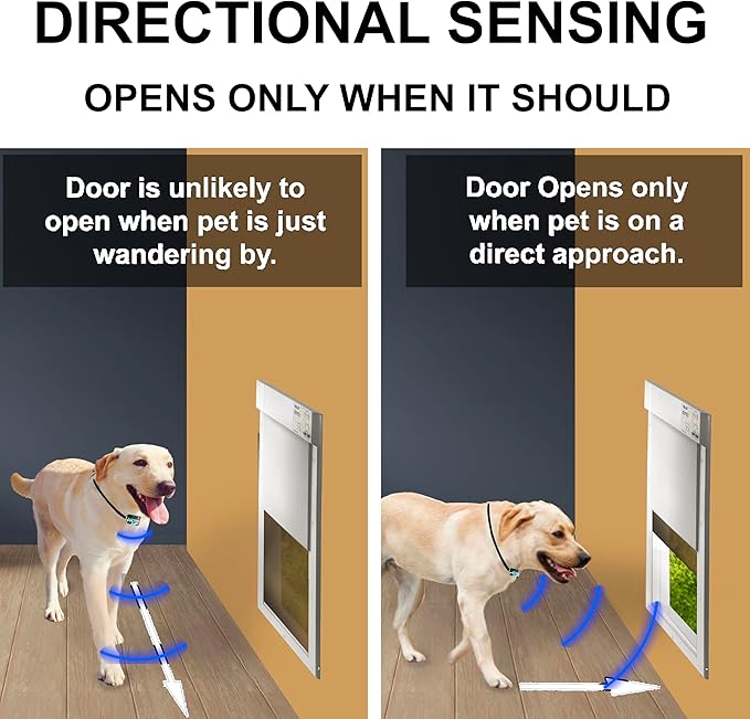 - NEW, IMPROVED MS-5 COLLAR: Waterproof and Rugged, Fits any Size Pet with a Completely Inaudible Signal DIRECTIONAL COLLAR SIGNAL: Opens the Door Only When Your Pet is on a Direct Approach, Not Just Wandering by or Sleeping Next to the Door.