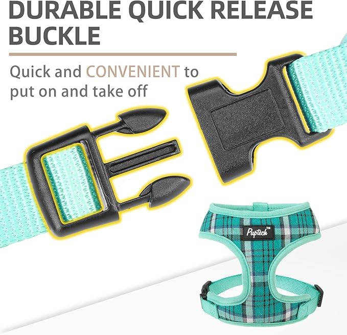 PUPTECK Soft Mesh Dog Harness and Leash Set Pet Puppy Cat Comfort Padded Vest No Pull Harnesses, Green, XS