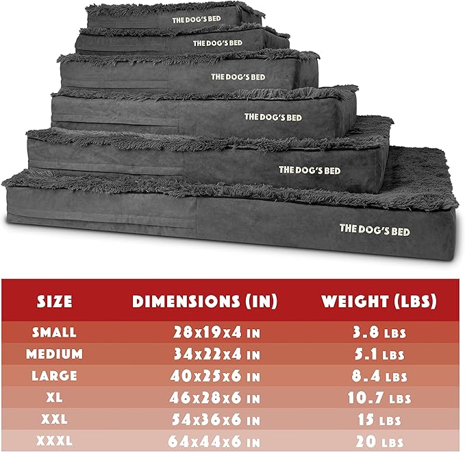 - XXL Grey Fur 54x36x6” waterproof orthopedic dog bed. Solid 2” high density, orthopedic memory foam over a solid 4” base of high stability support foam with covers designed so that your bed fits your home decor seamlessly and your dog can stay close to your family