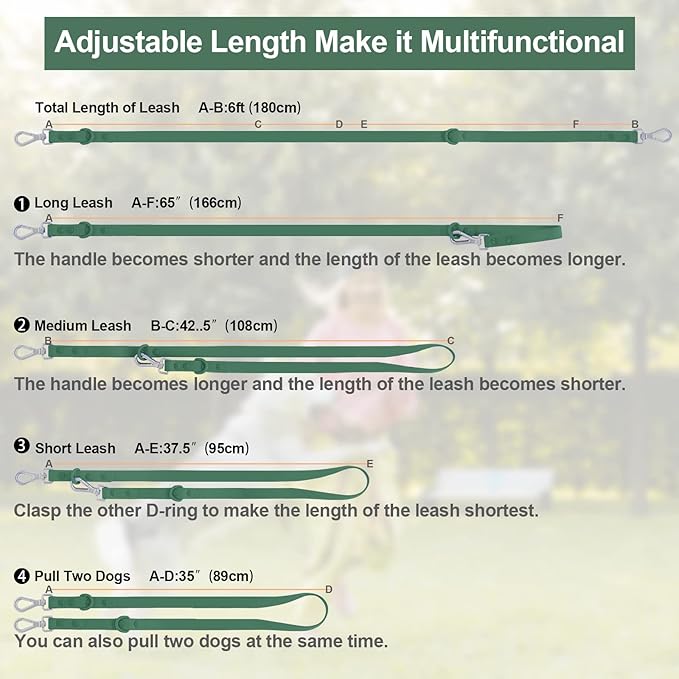 Wisedog Waterproof Dog Leash – 5ft/6ft Adjustable with 2 Metal Swivel Hooks, Easy to Clean Dog Leashes for Small, Medium, Large Breed Dogs (Pine Green L)