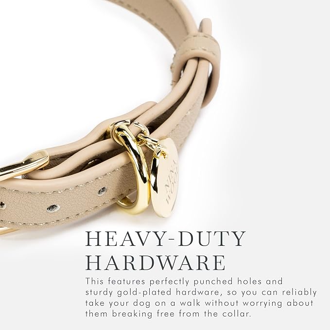 NINA WOOF Cupertino Dog Collars, Harnesses & Leashes Made from Vegan Leather with Dog Tracker Device Holder Adjustable Dog Collar (Extra Small, Beige)