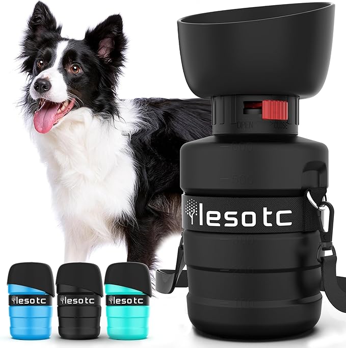 - Large Capacity: lesotc dog water bottle with a volume of 21oz/600ml. Dog travel water bottle can provide safe, fresh, and healthy water for puppy during long walking, travel, hiking, camping and other outdoor activities. It’s addition to your dog accessories, perfect for dog beach essentials and dog camping essentials