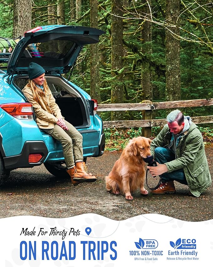- Safe and Lightweight: only 0.4 lb. / 185 g. Made from high-quality, food-grade, BPA-free plastic, this dog bottle water dispenser ensures your pet’s health. Keep your pet hydrated on the go with the pet water bottle. This travel dog water bottle is a must-have for outdoor activities such as walks, hikes, and travel, making it an essential part of your dog walking accessories and dog travel essentials