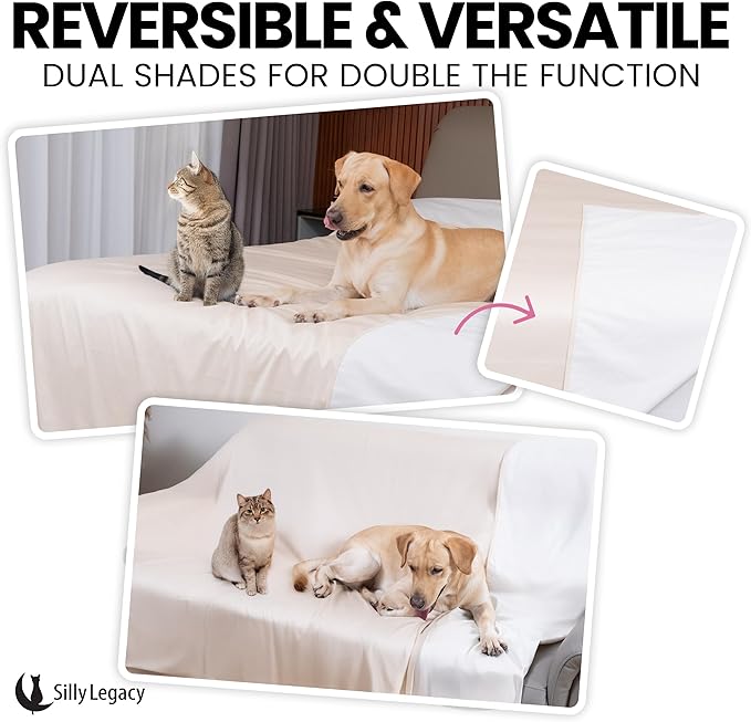 SILLY LEGACY Thin Reversible Waterproof Protective Cover or Liner for Bed or Couch, for Dogs and Cats, Babies; Incontinence, Dirt, Drool (King Size, 100 x 96 inch) (Beige)