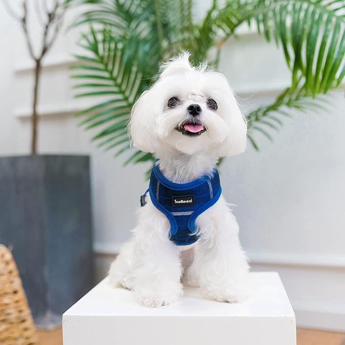 SCENEREAL Puppy Dog Harness with Leash Set for Small Medium Sized Dogs, Soft Mesh Step in Pet Harnesses and Leash, No Chock Plaid Adjustable No Pull Vest for Dogs Cats, Chihuahua,Bulldog (Blue M)