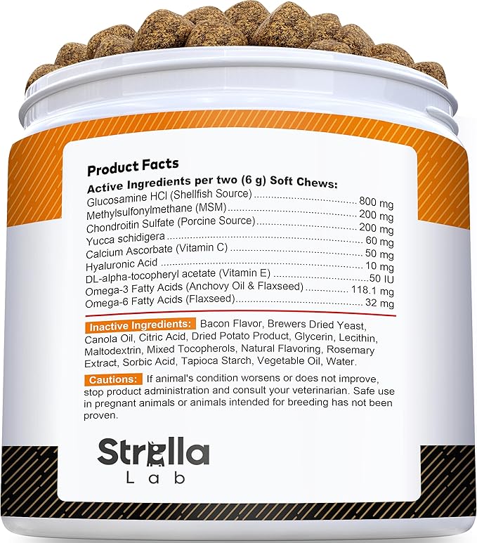 - American Quality Assurance: Our glucosamine for dogs is proudly made in the USA, ensuring top-quality care for your pets with 24/7 customer support. Rescue your puppy's joints with our tasty bites: the ideal old dog supplement for healthier joints.