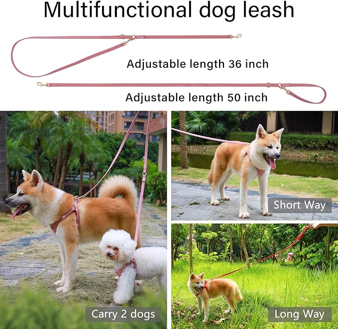 - 🐩 MULTIFUNCTIONAL DOG LEASH: The no pull dog harness is equipped with a multifunctional dog leash,It can be adjusted to two different lengths, also can lead two dogs at the same time, or carry keys and garbage bags to release your hands. When you take your dog out and need to enter the house, you can leave the dog outside and wait for your convenience.