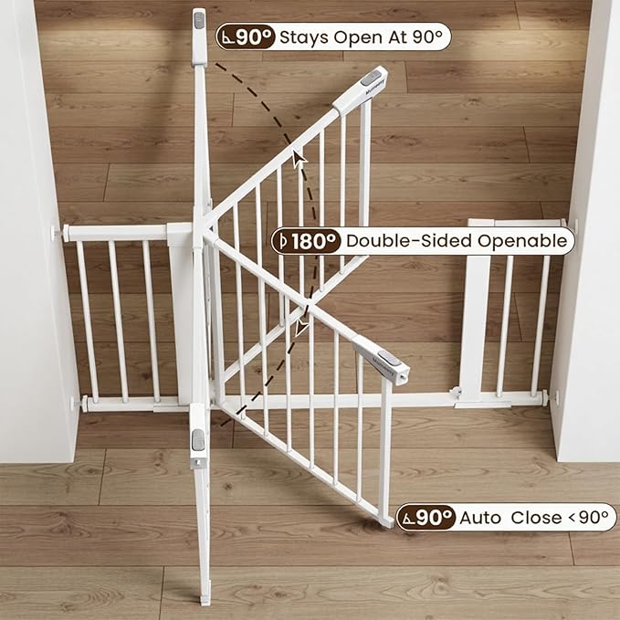 Mumeasy Baby Gate Extra Wide, 29.5"- 51.5" Pressure Mounted Dog Gate with Walk Through Door, Auto Close Pet Gate for Stairs,Doorways,House