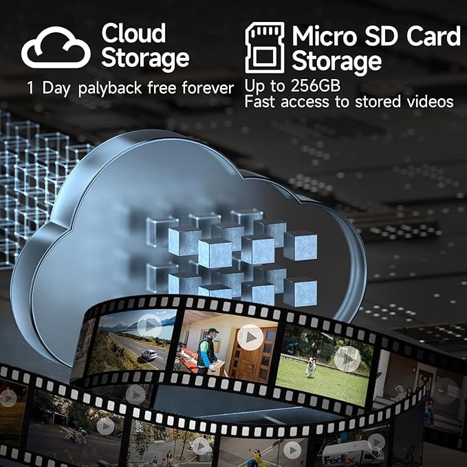- 【Local Stoage & AWS services protect your privacy】Install [O-KAM Pro] APP (IOS/Android) to set up the security camera.Free 3-day rolling cloud storage (No need any subscription, you can), The videos can be saved at micro SD card(NOT included, up to 256GB). If you have any questions with the camera, please find our customer service team on manual instruction.