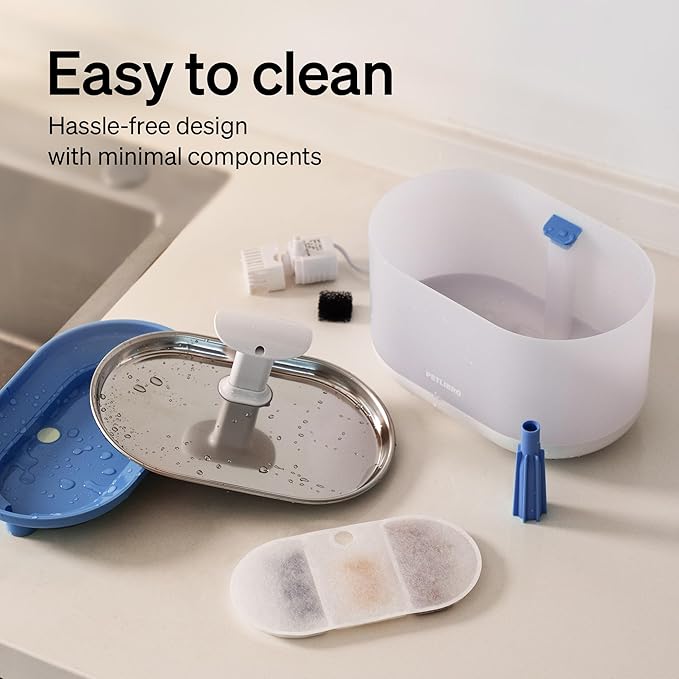 - Easy to Set Up & Clean: The PETLIBRO cat water dispenser is easy to assemble and disassemble for cleaning and replacement. For your pet’s health, it's recommended to change the filters and clean the pump and fountain every 2 weeks. (Please search "B0949GVFPX" or “B09GXC925J” to buy official replacement filters.)
