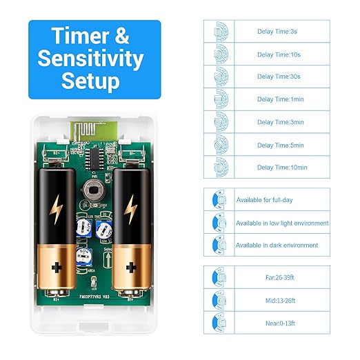 - ✅【three adjustabel Sensing mode】Motion Status Delay Settings:3S,10S,30S,1min,3min,5min and 6min(default time:30s), Adjustable Sensing Range: Near: 0-13ft Mid; 13-26ft Far: 26-39ft (Default Range:13-26ft),Sensing Setting: Available for full-day, Available in low light environment, Available in dark environment(default:full day),Please adjustable the sensing mode before installing. Automatically switches on the devices when motion detected. Pefect for different usage scenarios at home