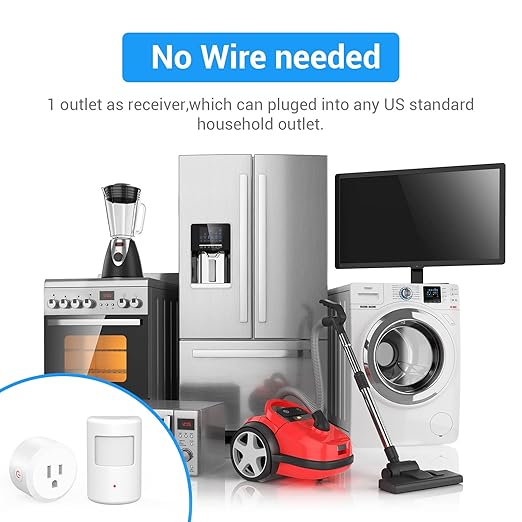 - ✅【Plug receiver and Motion Sensor】we have 1 outlet as receiver,which can pluged into any standard household outlet – the range from motion sensor is about up to 100ft; Motion Sensor has about 0-39ft (adjustable) motion detection range,which is battery powered (3 AAA Batteries not Included) - Ideal for plug-in lamps in hallways, laundry rooms, entrance ways, the exhaust fan in bathroom and more