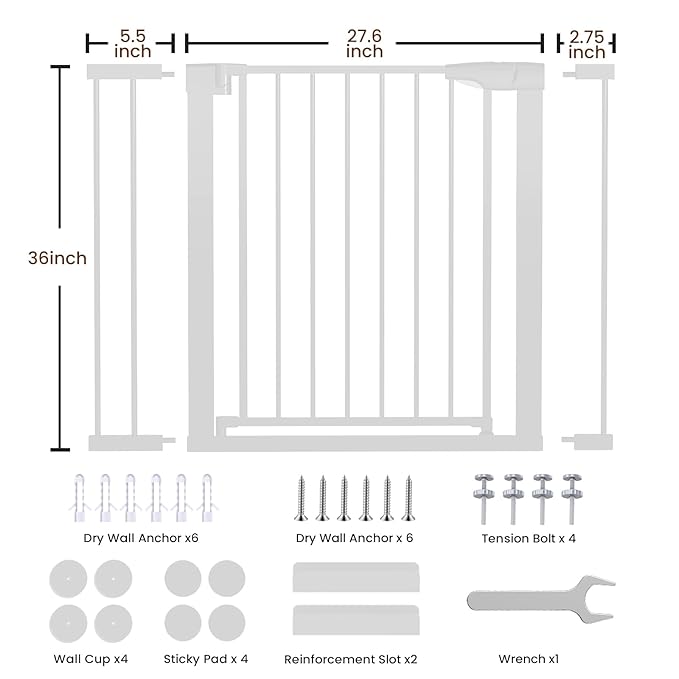 - Extra Tall: The dog gate stands 36 inches tall, taller than normal 28 inches gate, to avoid your pet jumps over or baby climbs over, and it fits 29.6"-40.5" openings.