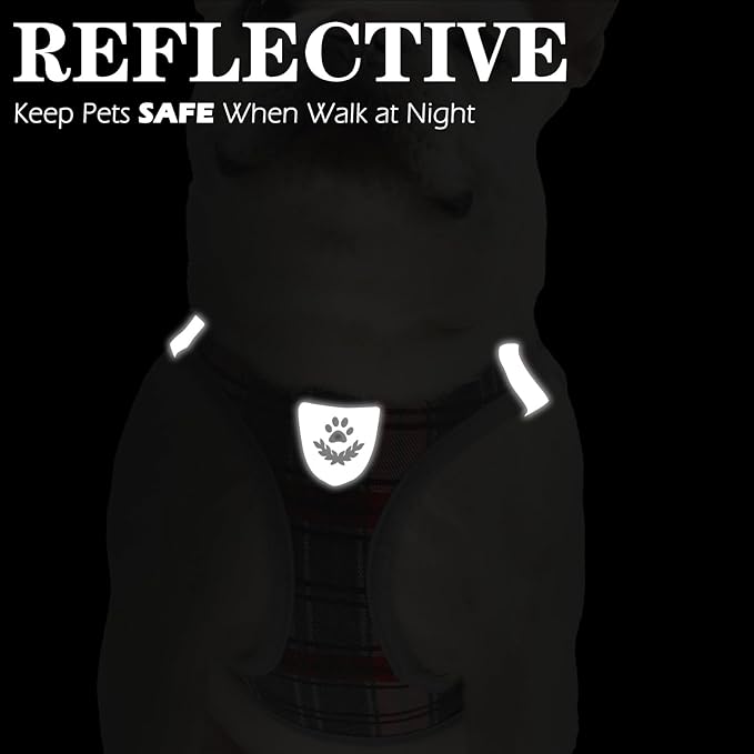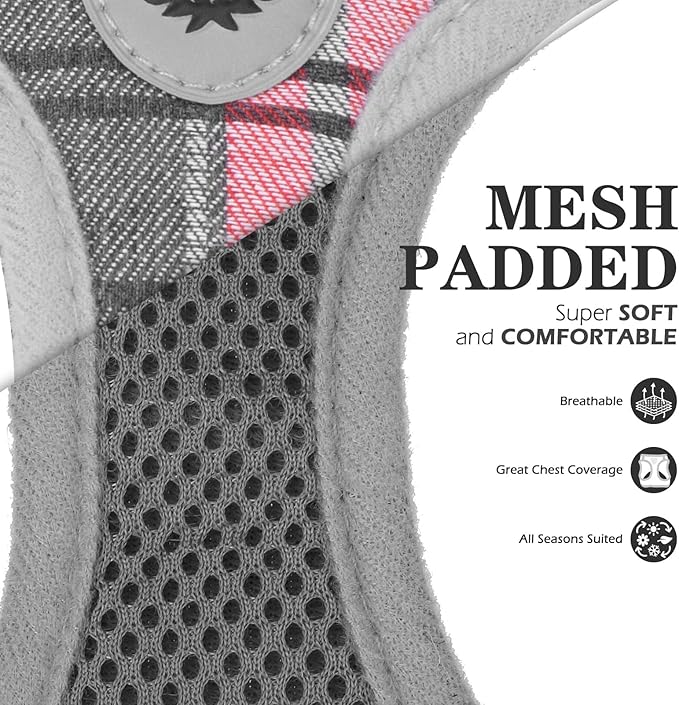 EXPAWLORER Classic Plaid Puppy Harness - Dog Collar and Leash - Soft Mesh Padded Adjustable Step in Small Dog Vest Harness No Pull, Reflective Escape Proof for Outdoor Walking, Grey Small