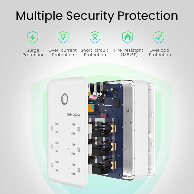 - App Control & Schedule: Smart surge protector power strip support remote control via the app, no matter where you are. Set a timer to turn on/off electrical appliances when you are home or away. As a wifi plug, only supports 2.4GHz WiFi.