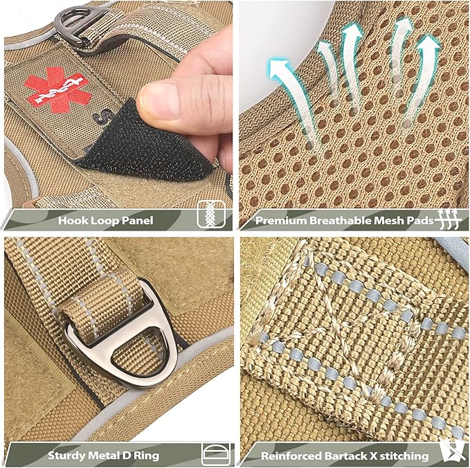 - FULLY ADJUSTABLE: Most pullover design on the market will make your dog resistant. The military K9 harness with 4 quick-release buckle and 4-point adjustments (2 Shoulder and 2 Chest) are easy put on and take off from one side. Allow a snug fit with maximum mobility