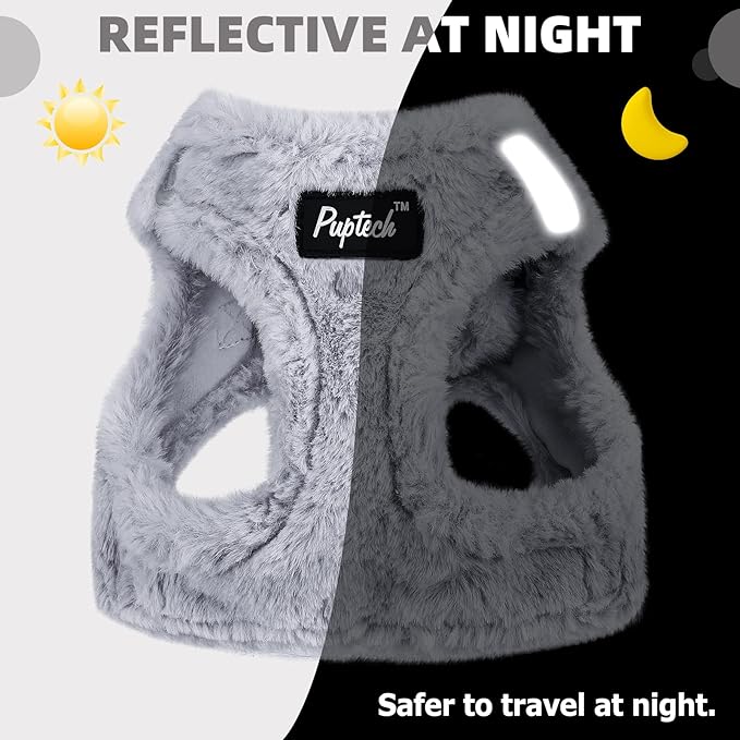 PUPTECK Adjustable Dog Harness Collar and Leash Set Step in No Pull Pet Harness for Small Medium Dogs Puppy and Cats Outdoor Walking Running, Soft Mesh Padded Reflective Vest Harnesses, Plush Grey S