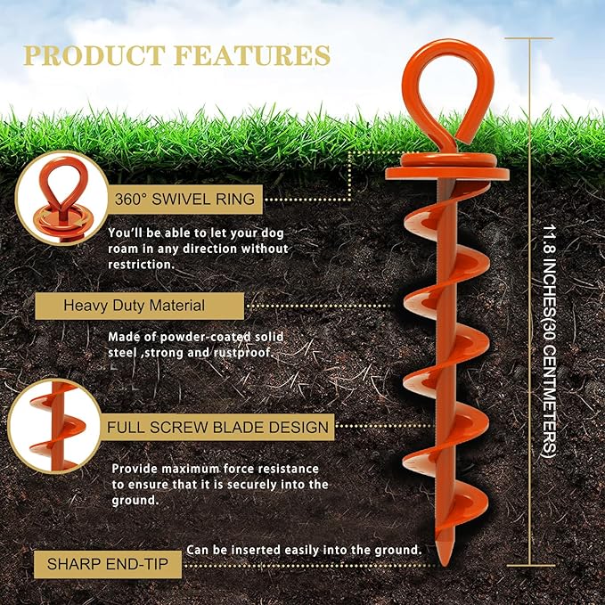 - DESIGNED IN THE USA! Your 360-degree Heavy Duty Tie Out Stake has exceptional build quality and is made to last. Each purchase comes with One year after-sale protection upon registration! Have issues? Our experts are on standby and will reply to you in 12 hours or less.