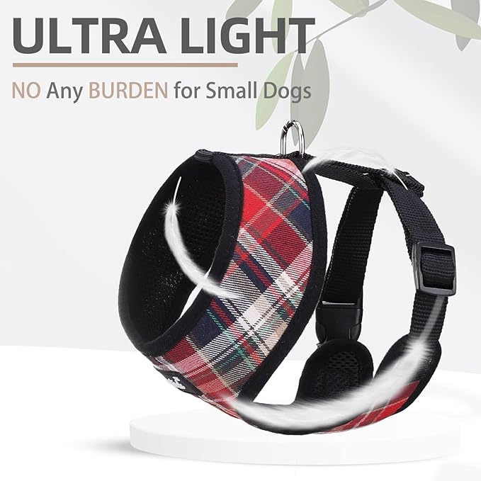 - DIFFERENT DESIGN: The harness is adopted with a plaid pattern which is designed by our internal brand team, so it's unique and very different from other normal harnesses. This plaid pattern looks both classic and stylish and is never out of date. It's great for everyday walking or going to a holiday party. It makes your furry friend look so lively and cute