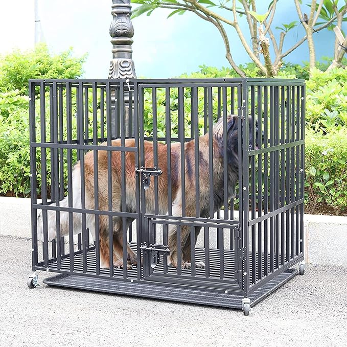 - Chew Resistant Square Tube - 0,6 inch Square steel tubes design are more resistant to chew than round dog kennels, Reinforced sturdy large dog crates are made of corrosion-resistant carbon steel, hard to be damaged, nontoxic finished and vulcanization surface keep your dog health and excellent anti-rusty ability, This is a very sturdy large pet cage, even for strong, powerful and aggressive dogs