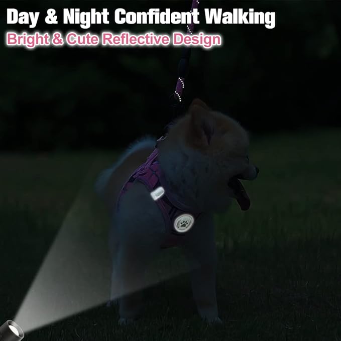 - 🐶Easy on and Lightweight---STEP IN, CLIP & GO! Effortlessly slip this easy-to-wear vest harness on and off your puppy in seconds. 1) Put the pet's front legs in the step-in harness. 2) Lift the small dog harness and lock the buckle. 3) Adjust the chest size and clip leash on the D ring. Now let's have a walking with your pet dog!