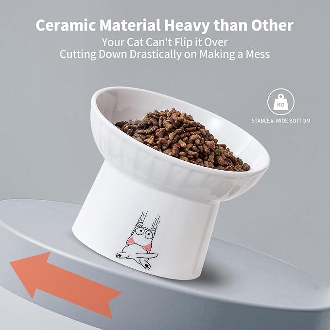 - Reduce Neck Burden-The perfect height of raised cat bowls reduce cat's neck burden (minimum height: 4 inches, maximum height: 5 inches). The elevated cat bowl put a cat's mouth at a better position in relation to its stomach, it helps cat swallow more easily and alleviates their occasional vomiting.