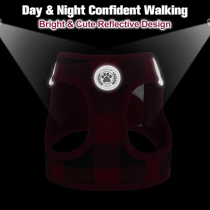- 🐶Comfortable and Reflective ---Adjustable dog harness features colorful plaid and breathable mesh fabric, comfortable to wear and will not stick to the dog?¡s hair. Reflective strips deign reflect ambient light in low light conditions, making you and your dog safer when walking and moving around at night without worrying about blurred vision in the dark.