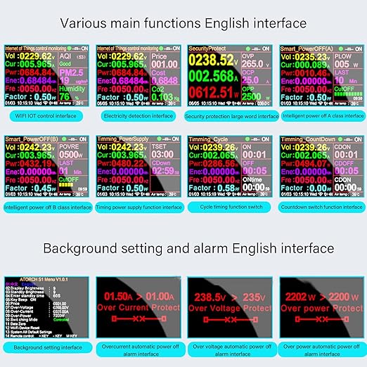 - Display Alarm: Our smart metering socket has a display alarm function, which will display when over voltage, over current, over power.