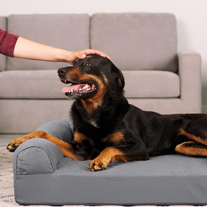 Furhaven Orthopedic Dog Bed for Large Dogs w/ Removable Bolsters & Washable Cover, For Dogs Up to 95 lbs - Pinsonic Quilted Paw L Shaped Chaise - Titanium, Jumbo/XL