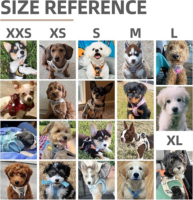 - [REFLECTIVE, PLAID PATTERN] - This Harness has two sides of reflective straps, and the middle logo also is reflective, so if you walk with your dog at night, then both of you will be safer! In addition, the classic plaid pattern is designed by our internal brand team, so it's very different from other normal harnesses. This plaid pattern looks both classic and stylish and is never out of date