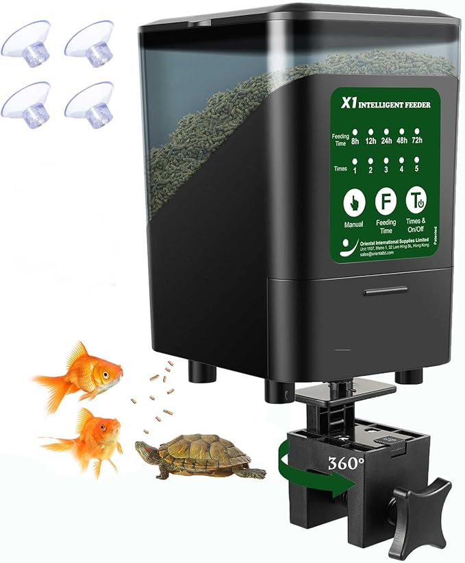 Large Automatic Fish Feeder, 14 Fl.Oz Patented Revolutionary Design Aquarium Food Tank Dispenser with Timer, Auto Feeding Moisture-Proof Electric Adjustable Battery Operated Feeders for Holidays