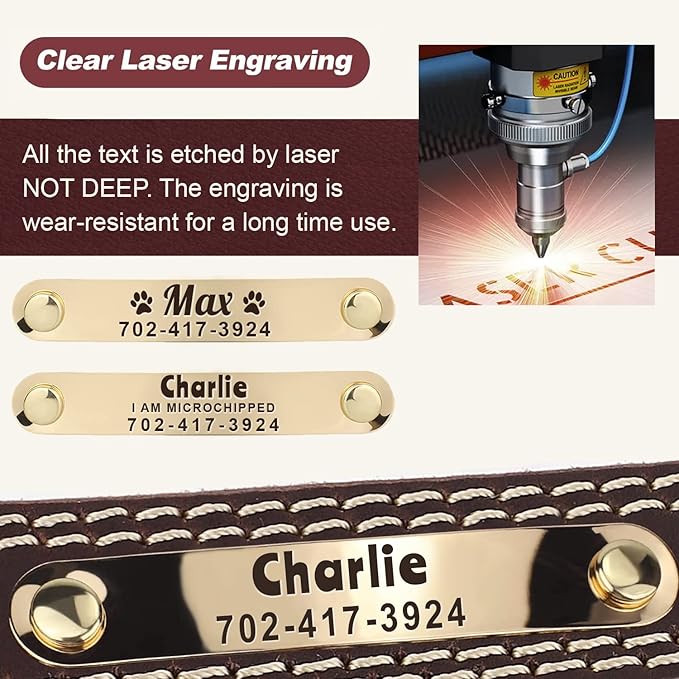 - 🐕 Help Your Dog Get Home Safely: With this engravable dog collar, you can rest assured that your pet will never get lost. The laser engraved dog collar name tag with the dog ID is clearer and easier to read than most standard dog name tags.