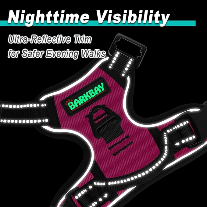 BARKBAY Dog Harness No Pull 3 Buckles for Large Dogs - Adjustable, Reflective, Comfortable, No Choke, Heavy-Duty - Perfect for Outdoor Training, Walking, and Hiking - Strong & Durable - XL & Pink