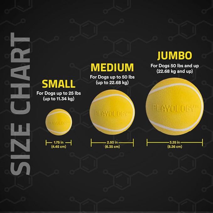 - Playology's Squeaky Chew Ball: This Medium squeaky dog ball features a fun squeak to catch your dog's attention and keep them entertained 7x longer than unscented toys. This rubber dog ball is ideal for medium breeds (up to 50lbs). Durable enough to withstand play indoors and outdoors, this medium dog ball is an essential item to entertain your K9 companion.