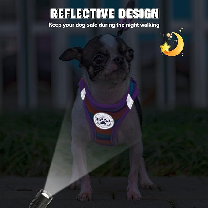 - Easy-to-Wear Vest Harness: Easy on/off, STEP IN, CLIP & GO. Modern street-style striped doggy harnesses with comfort and practicality. Our unique durable puppy chest harness is wear-tested on our pet models to ensure the best fit.