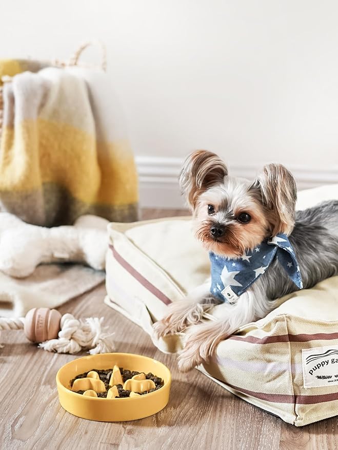 - Slow Down Eating, Bring Dog A Healthy Diet: Fast-eating dogs experience bloat, regurgitation, and obesity easily. Our slow feeder dog bowl design with the ridges and maze pattern helps your dog to eat slower than 14 times. Your dog could change his overeating behavior through a challenge and fun mealtime
