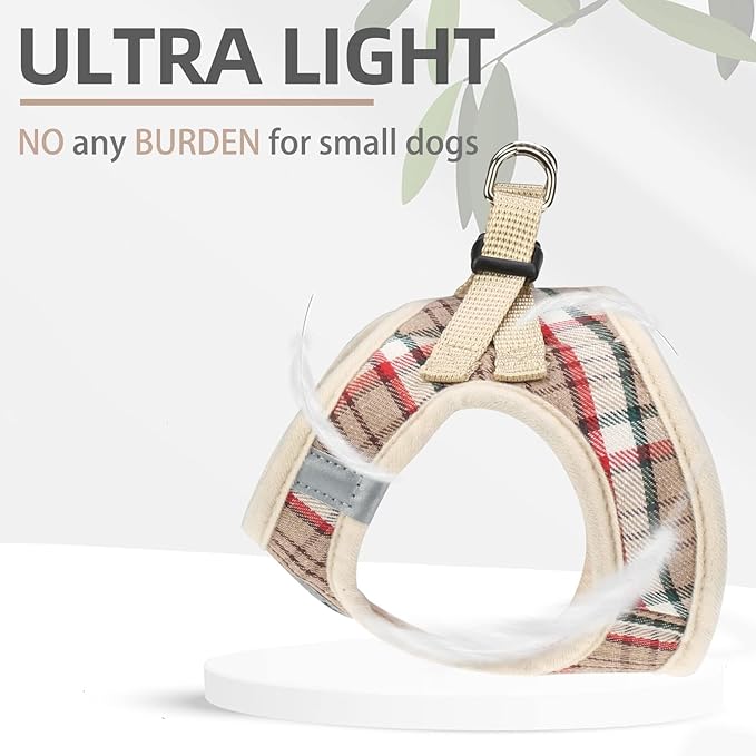 - [REFLECTIVE, PLAID PATTERN] - This Harness has two sides of reflective straps, and the middle logo also is reflective, so if you walk with your dog at night, then both of you will be safer! In addition, the classic plaid pattern is designed by our internal brand team, so it's very different from other normal harnesses. This plaid pattern looks both classic and stylish and is never out of date.