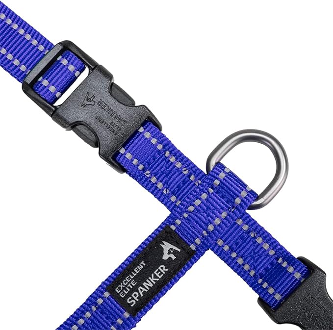 EXCELLENT ELITE SPANKER No Pull Dog Harness Reflective Nylon Vest L-Shaped Adjustable Easy Pet Harness for Small Medium Large Breeds Dogs Walking Training Black Red(Blue-M)