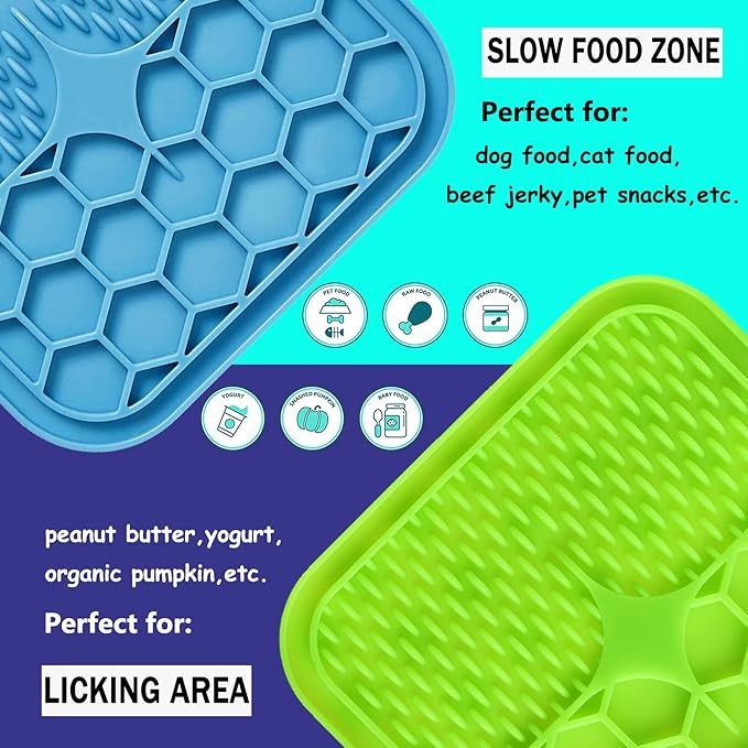 Lick Mat for Dogs, 2 Pcs Dog Lick Mat with Suction Cups for Anxiety, Peanut Butter Dog Licking Mat Slow Feeder Dispensing Treater Lick Pad for Dogs Cats Grooming Bathing and Training