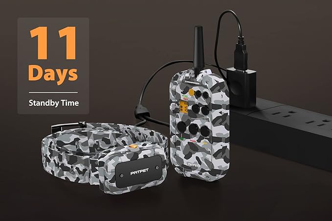 - 【Nice Gift & Luxury Enjoyment】Advanced Textured remote control is easy to use. Camouflage 920 is stored in a black storage toolbox, convenient to carry & easy to store. Patpet dog training collar is also a good gift for your friends or relatives who have dogs.