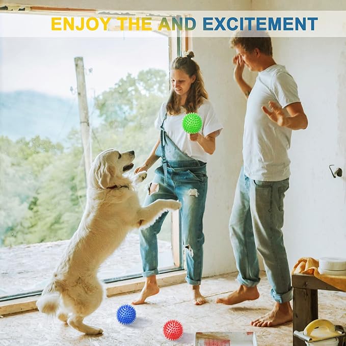 - SQUEAKY BALLS FOR DOGS: Inside each spikey dog ball is a squeaky ball that adds an extra layer of fun and excitement for your furry friend, no choking hazard when chewing or playing. When your dog bites, spiky dog balls will continue to make a cute sound, not too loud, but still get dogs’ attention, they'll love the sound and the challenge of trying to get it out of the ball.