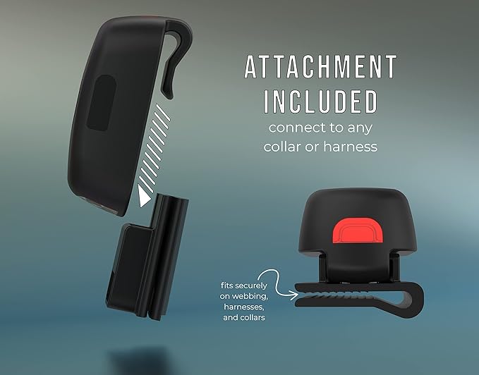 - Flashlight clips into the oval compartment. A separate attachment (also included) allows the flashlight to connect to almost any harness, collar, or flat lead.