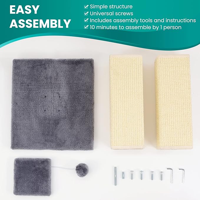 - Easy to Assemble: With an easy-to-follow assembly process, this scratching post can be put together in minutes, making it simple and stress-free for you to set up for your cat. Each package comes with installation instructions and a screwdriver.