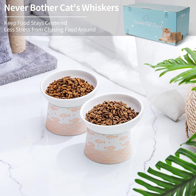 - Ceramic Material-Exquisite cat bowl, with elegant looking and smooth surface, durable and easy to clean. Microwave and Dishwasher safe.
