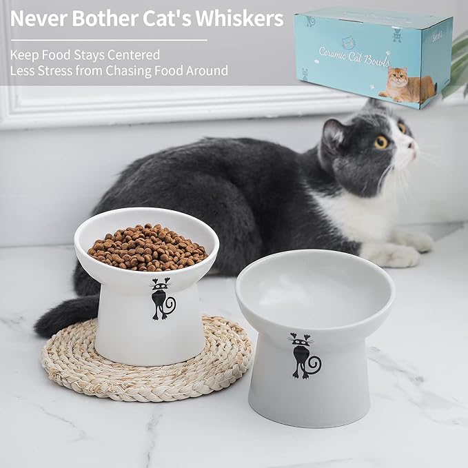 - Ceramic Material-Exquisite cat bowl, with elegant looking and smooth surface, durable and easy to clean. Microwave and Dishwasher safe.