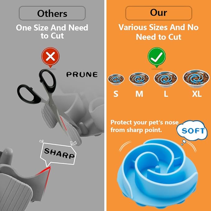 - 【SOFT AND SAFE FOR YOUR PET'S NOSE】Made from high-quality silicone material, our dog bowl slow feeder is designed to be soft and gentle on your pet's sensitive nose. Unlike other materials, silicone won't scratch or irritate your pet's skin, making mealtime a comfortable experience for your furry friend.