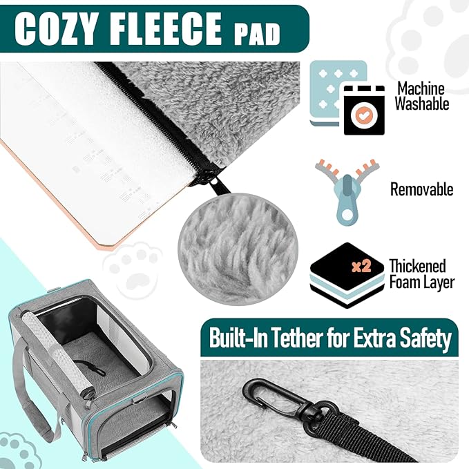 - 2 carrying ways to make transport easy and convenient. By hand with the padded top handle, or over the shoulder with the adjustable and detachable non-slip shoulder strap for custom mobility, making sure your furry friend is always within reach. Easy to secure on the car seat firmly by shoulder strap to keep pets restrained for safety while driving