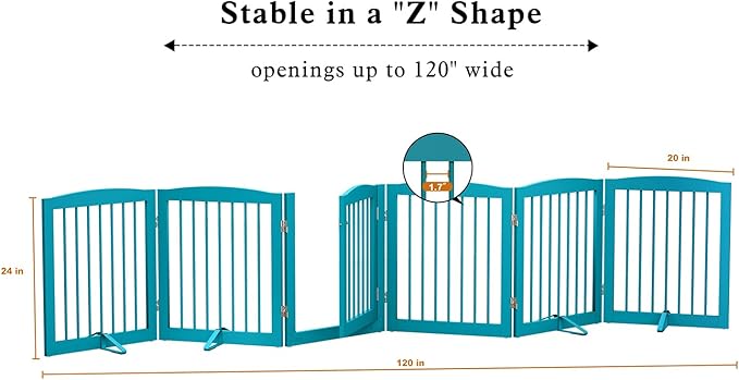 - 【Sturdy and Durable Construction】: Made with high-quality MDF materials, this pet gates for dogs are sturdy and durable. The exclusive metal support feet included with the walk through pet gate provide added stability and security, ensuring that the freestanding dog gates remains in place and does not wobble or tip over. Sturdy hinges that can rotate 360° to accommodate different shapes.